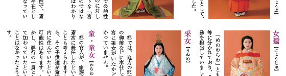 天皇の代わりに伊勢神宮の天照大神にお仕えしていた女性のことで、天皇の娘や姉妹などの中から未婚の女性から選ばれ都から遠く離れた斎宮(現 三重県多気郡明和町斎宮)で暮らしていました。