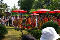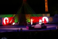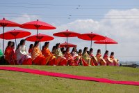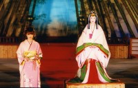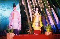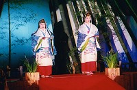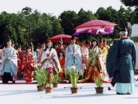 照明のなかで、火起しの儀・THISのミニコンサートそして雅やかな衣装の群行の入場!