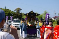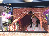 午後2時過ぎに出発して旧道の街道筋を群行し雅やかな平安衣装に人々の目を楽しませていました。