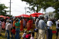 初日の大淀禊の儀、微妙な雲行きに合わせ12:50に禊址に献花し大淀群行を始めて13:10ころに急に雨が降り出し、