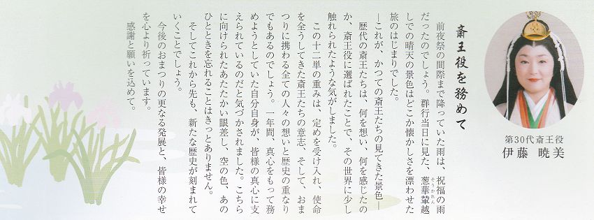 第30代斎王は、伊藤暁美さんに決定しました。